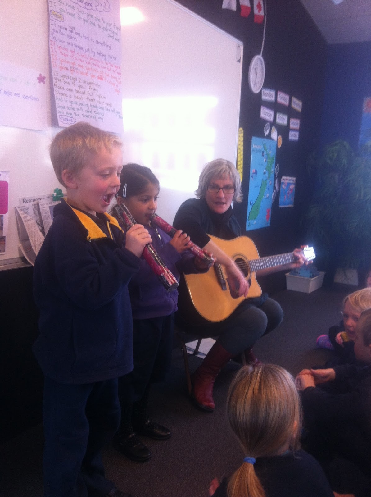 Pod 2 have been doing such a great job of learning some tricky words to new songs that Gilly chose two people to lead with a 'microphone'. Well done Angus and Ania-Kanu - you really helped everyone to learn the words well.